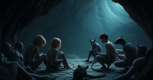 Back in the light, Yroi pulled herself together to face the tribe members huddled around a lava vent. Younglings of several species—saurian, human, dwarvenkind, fuzzcat—stared at her, frowning.